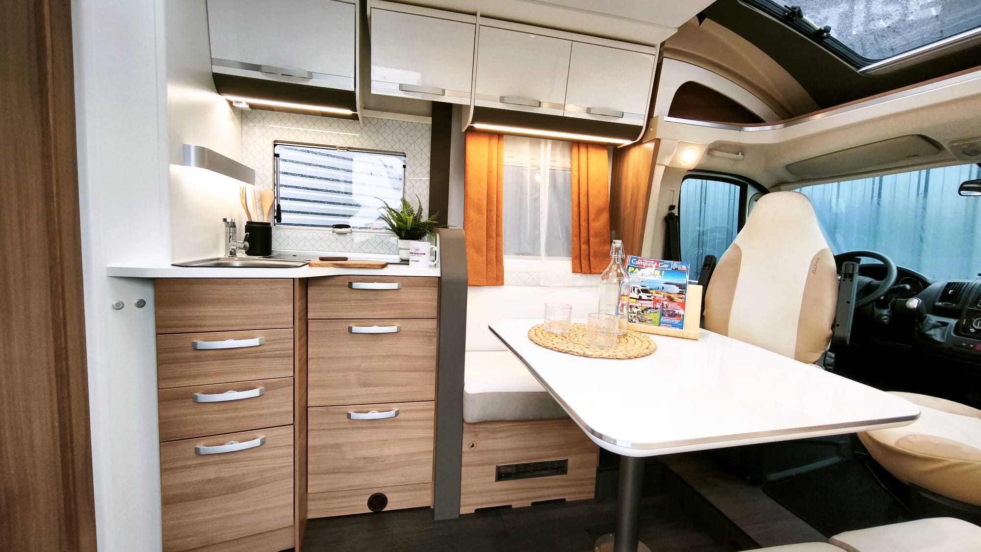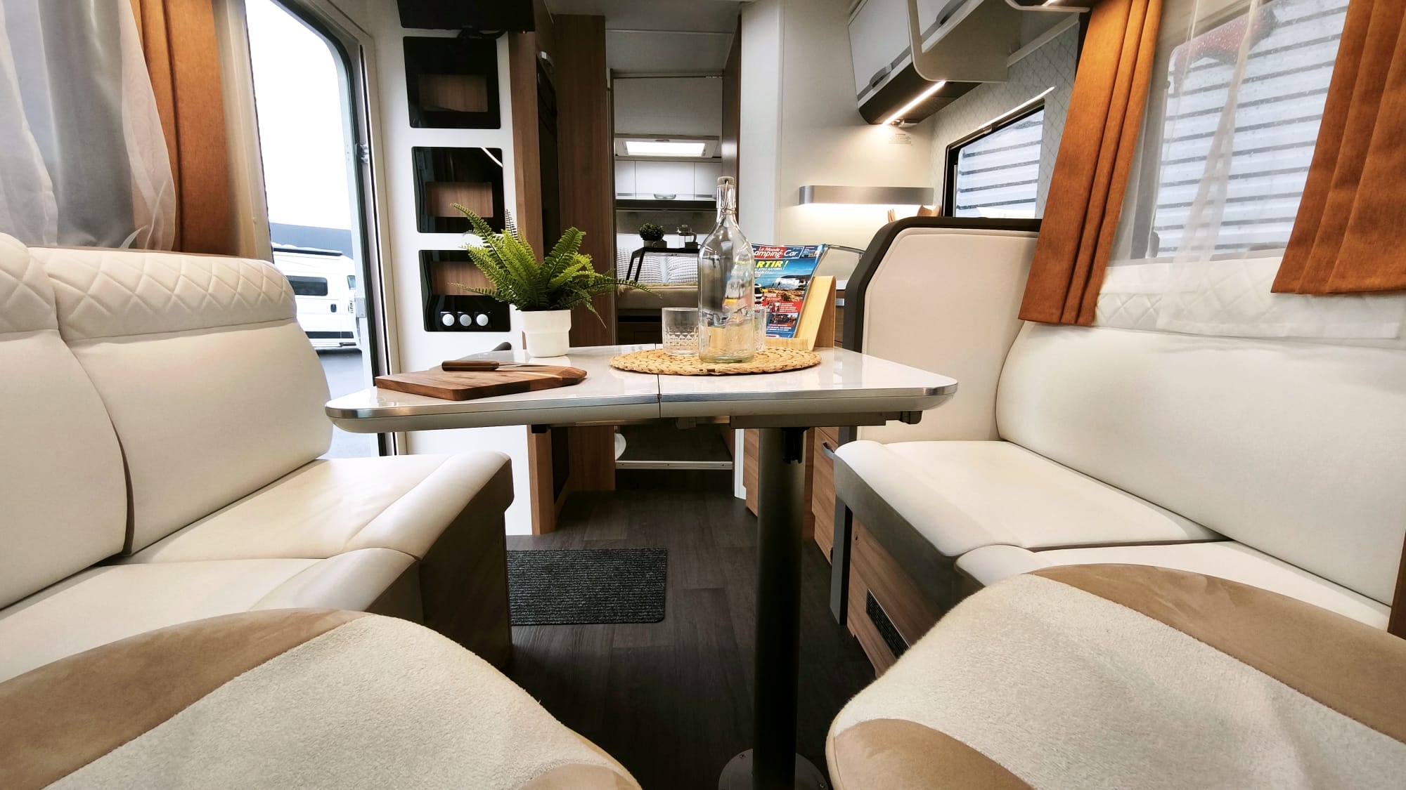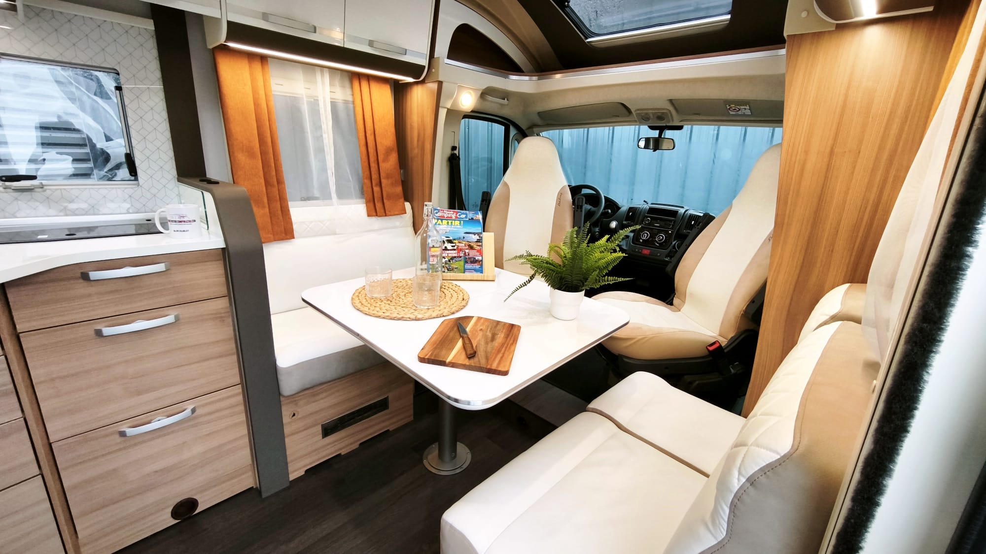 Camping-car Profilé Haut de gamme en Boite Auto – Lit Central avec Lit de Pavillon et salon Face Face