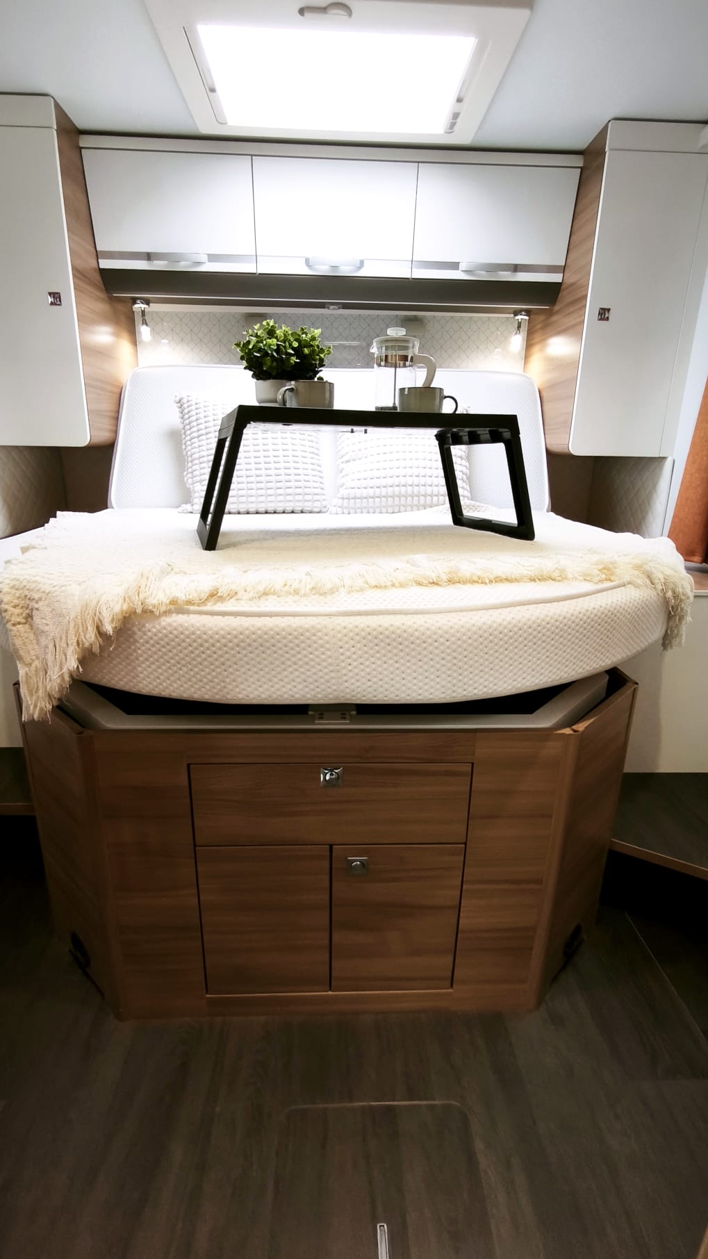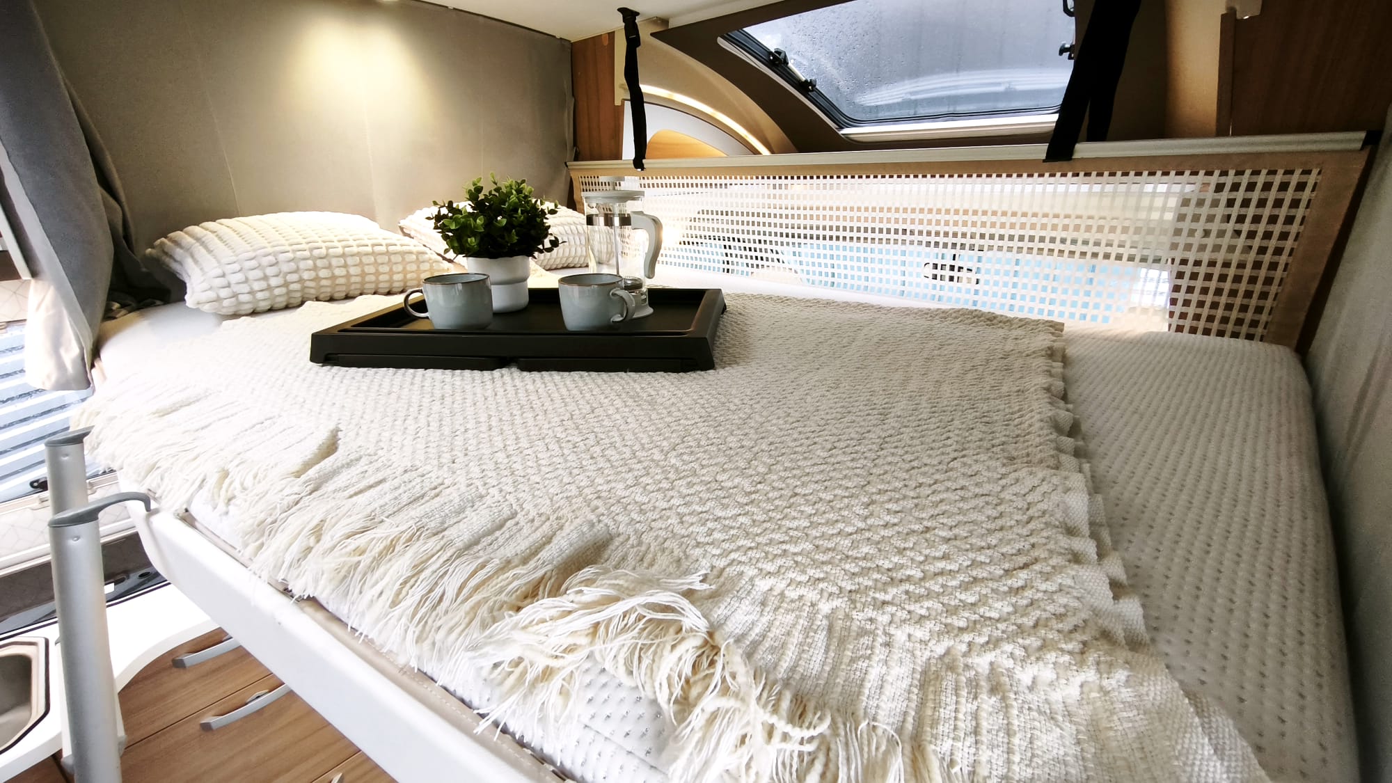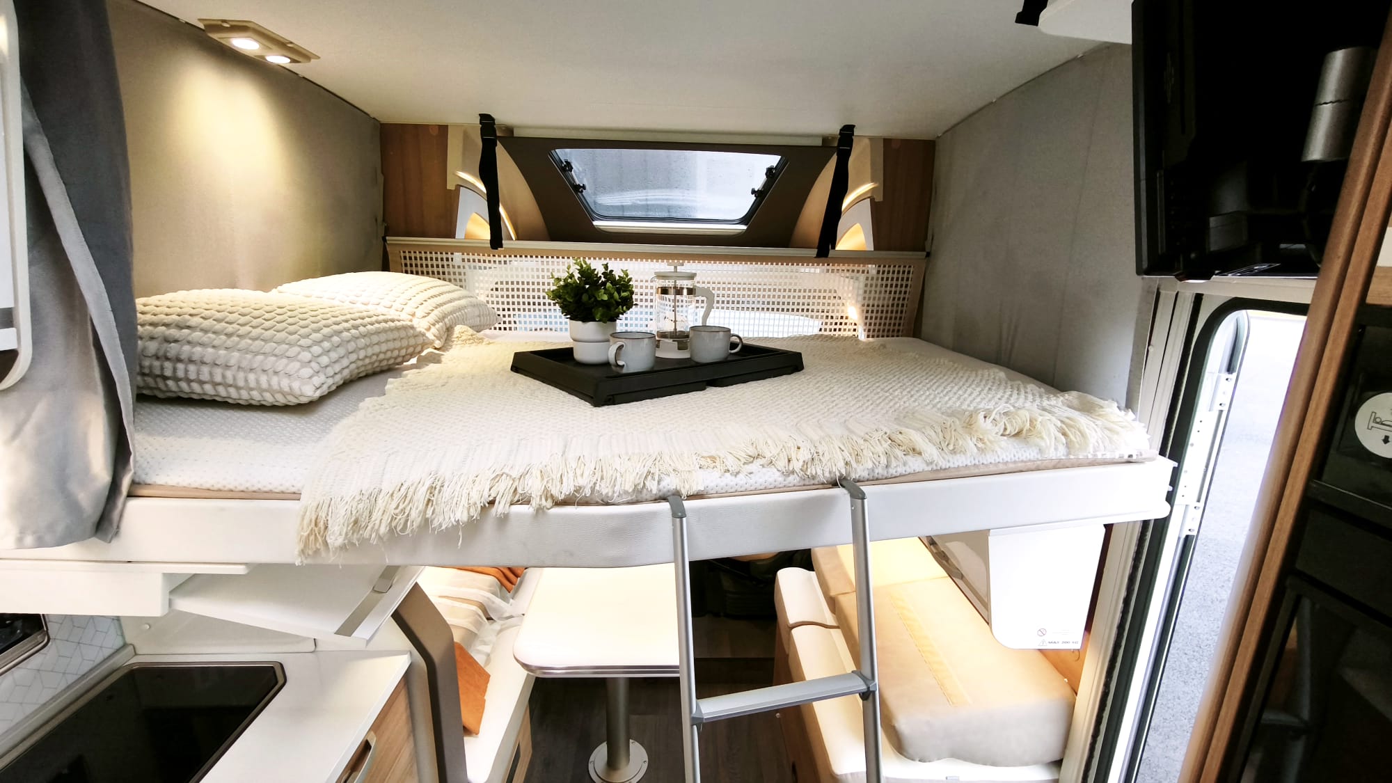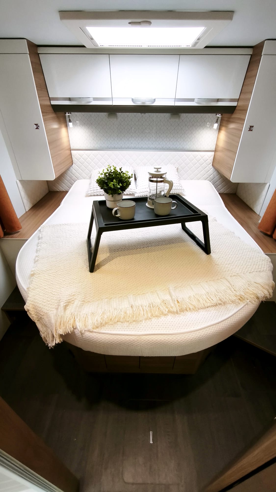 Camping-car Profilé Haut de gamme en Boite Auto – Lit Central avec Lit de Pavillon et salon Face Face