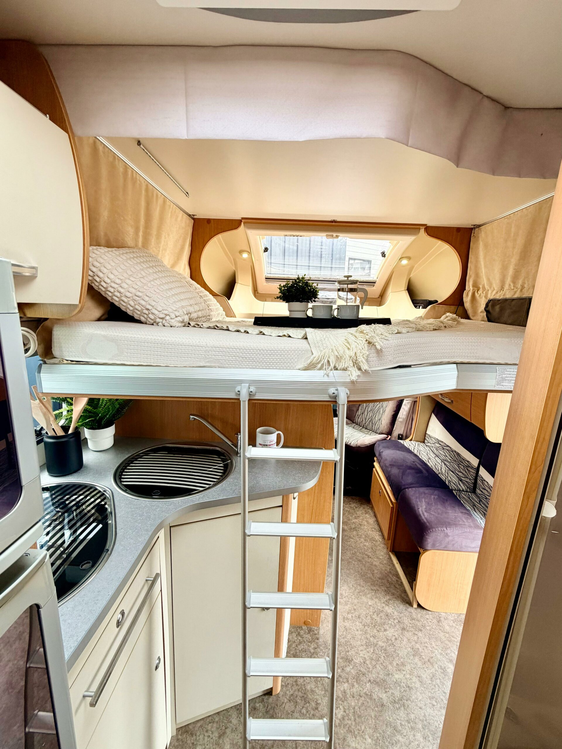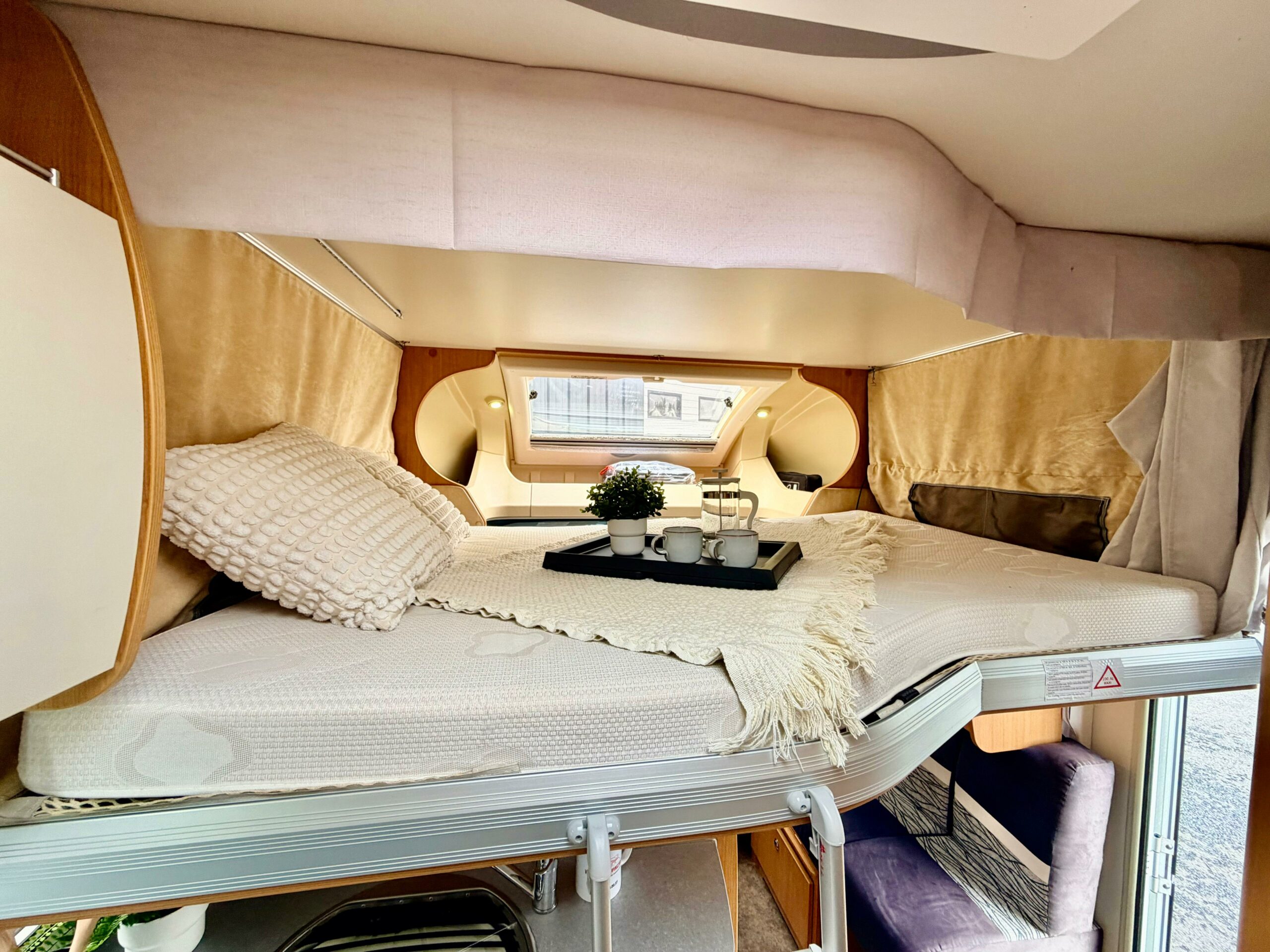 Type de couchage : Lit central (189 x 138 cm), Lit de pavillon (191 x 140 cm) et lit dinette (215 x 100 cm)