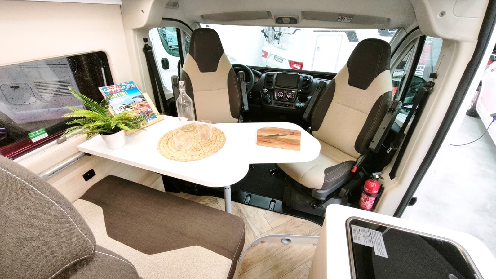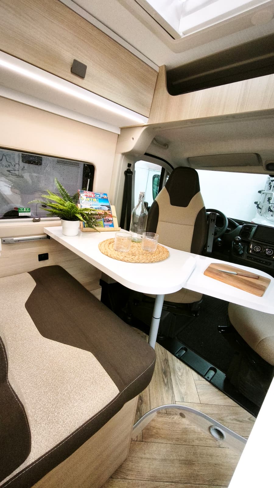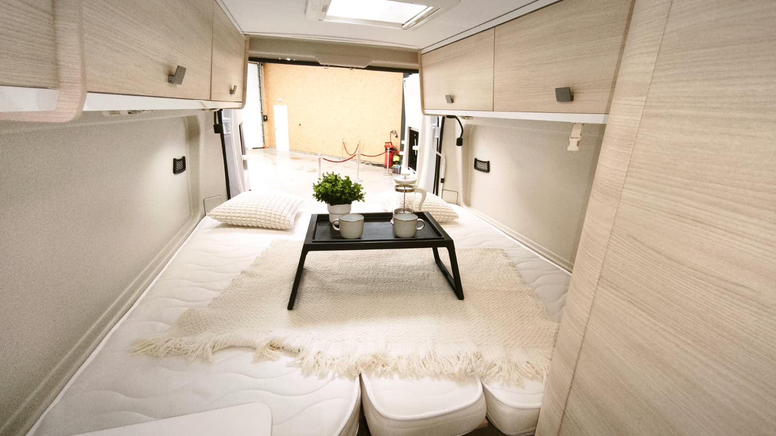 Couchages : Lit jumeaux (195 x 80 cm et 186 x 80 cm) transformable en King Size (195/186 x 186) et lit dinette 180 x 100/50