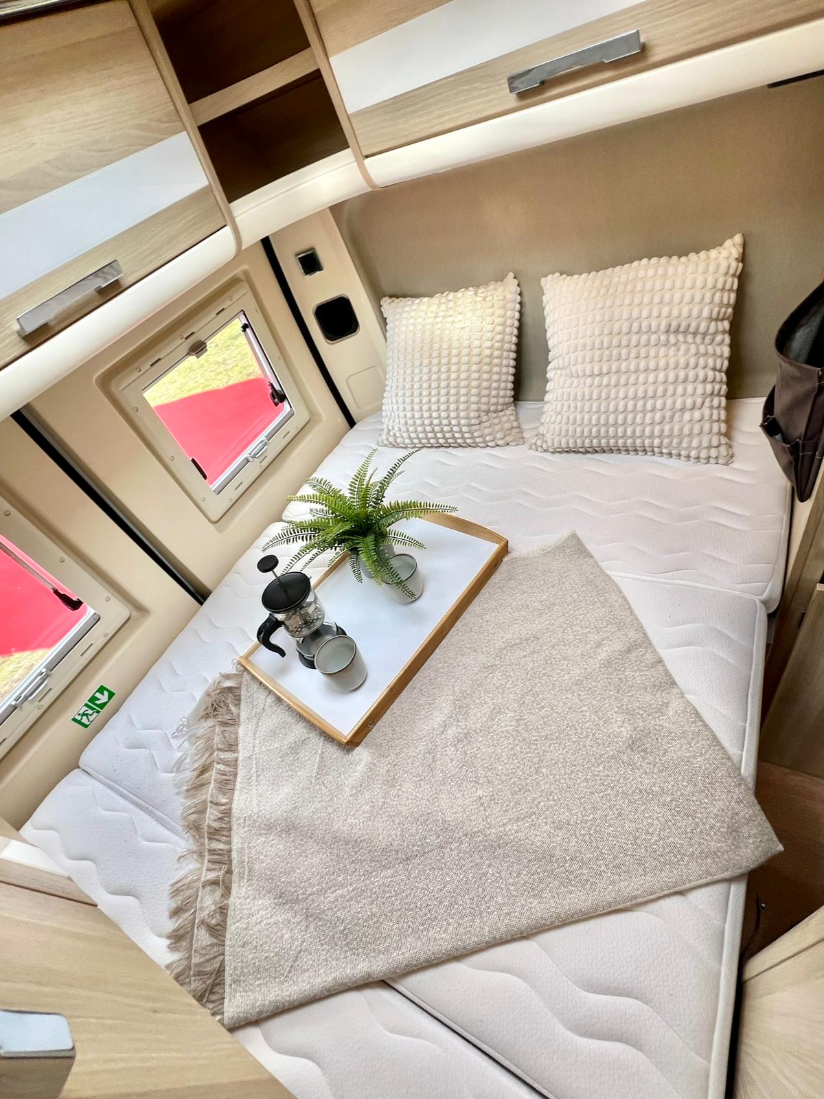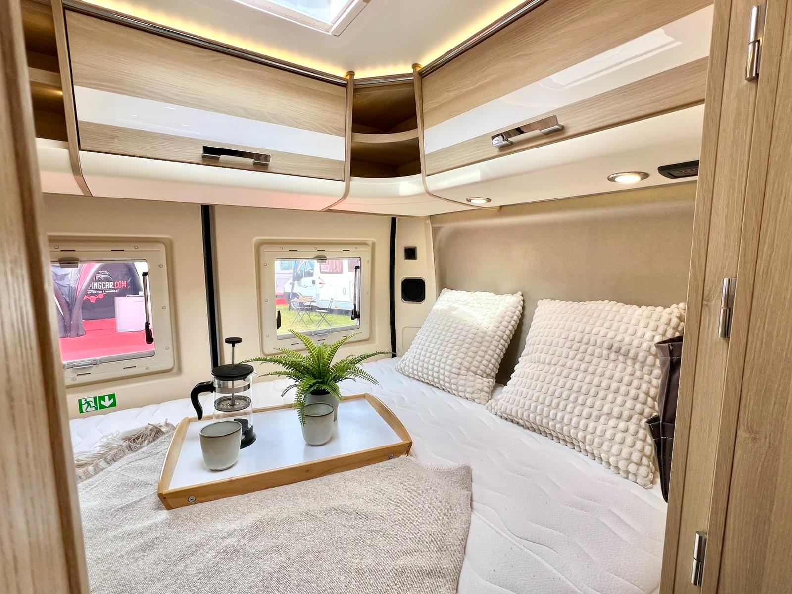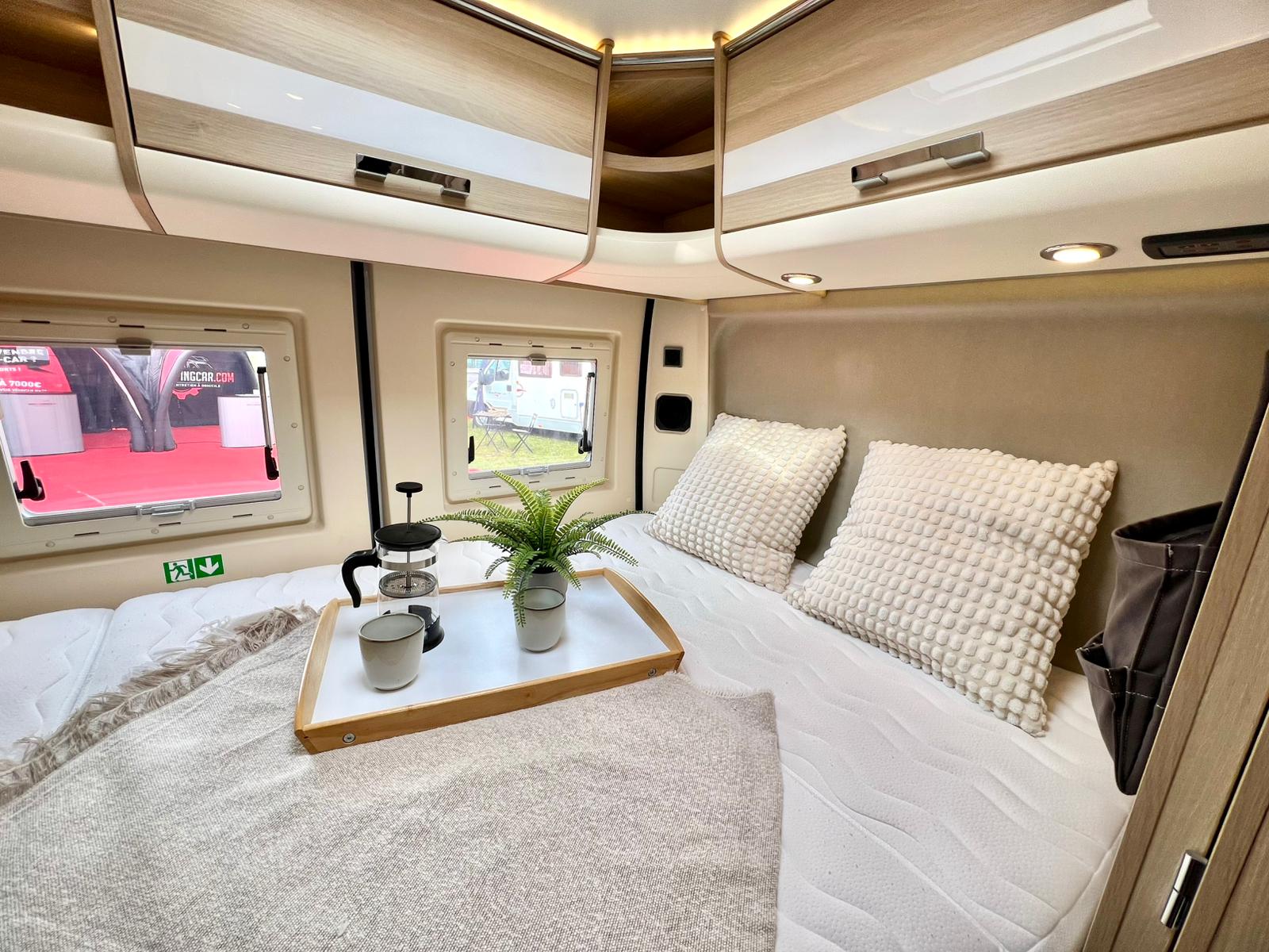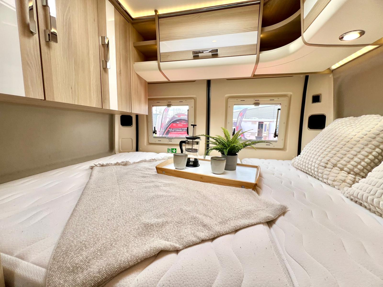 Couchages : Lit transversal arrière (192 x 132 cm) & couchage dinette (185 x 100 cm)
