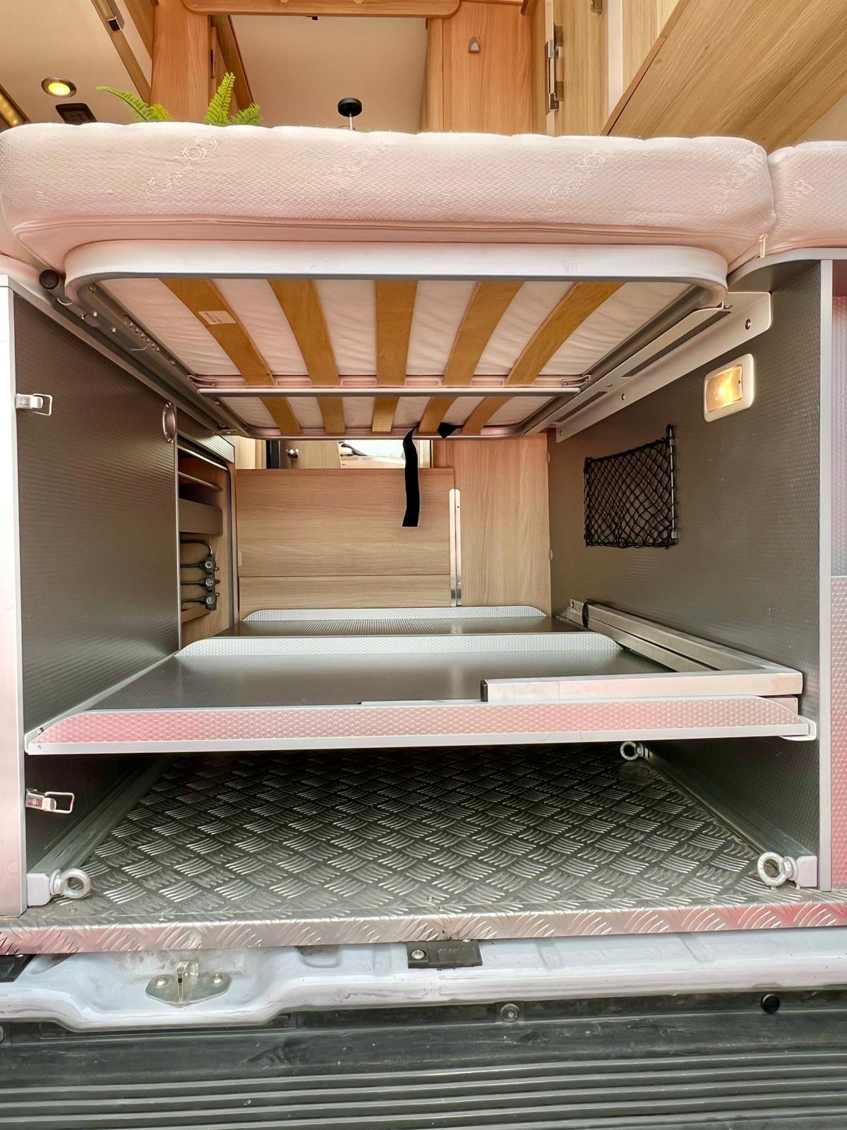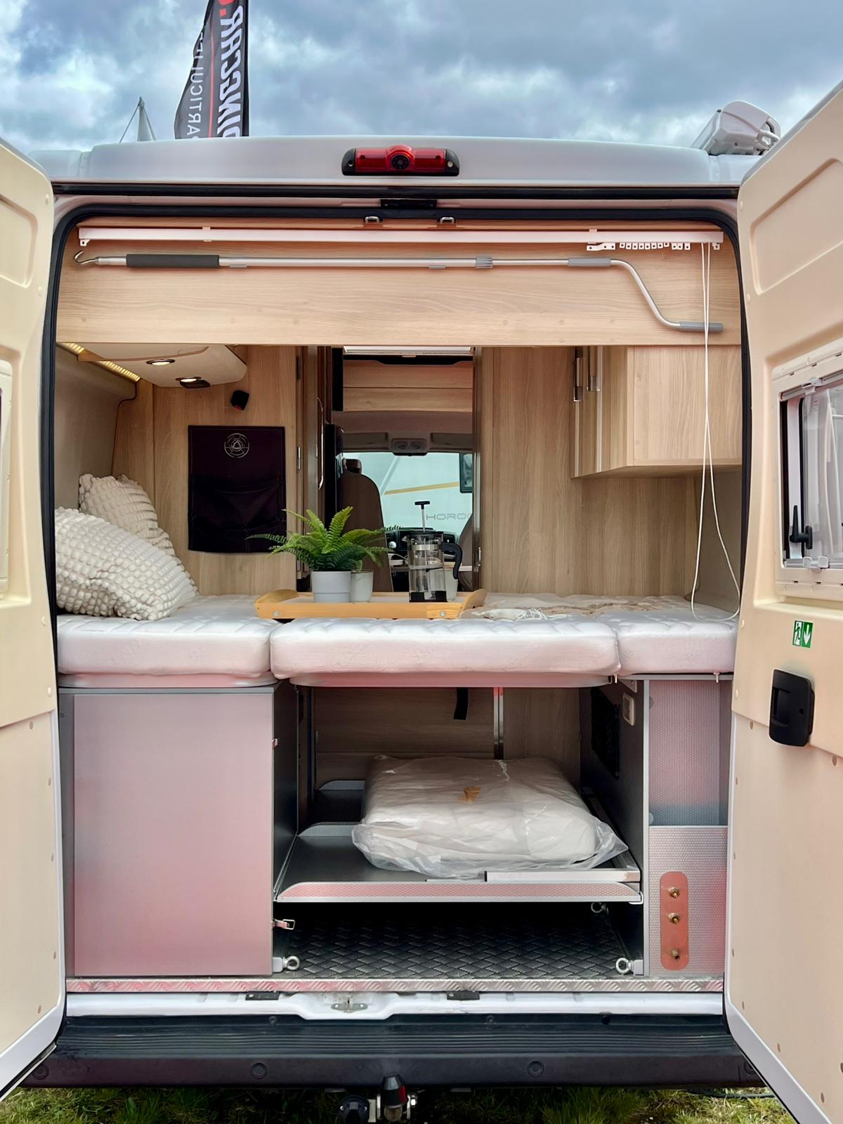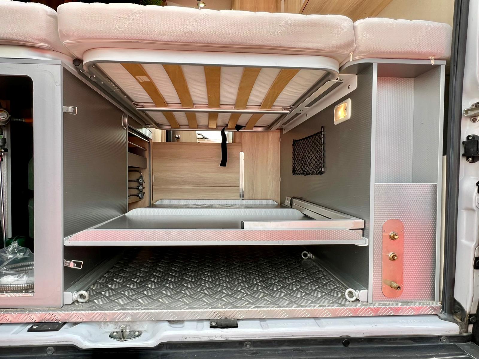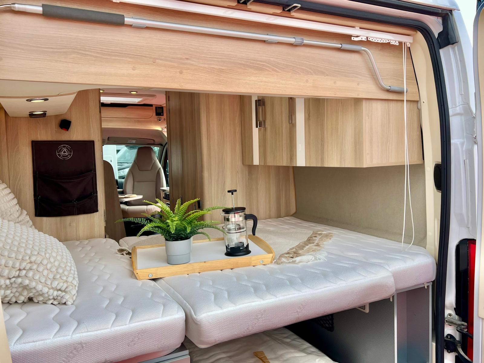 Couchages : Lit transversal arrière (192 x 132 cm) & couchage dinette (185 x 100 cm)