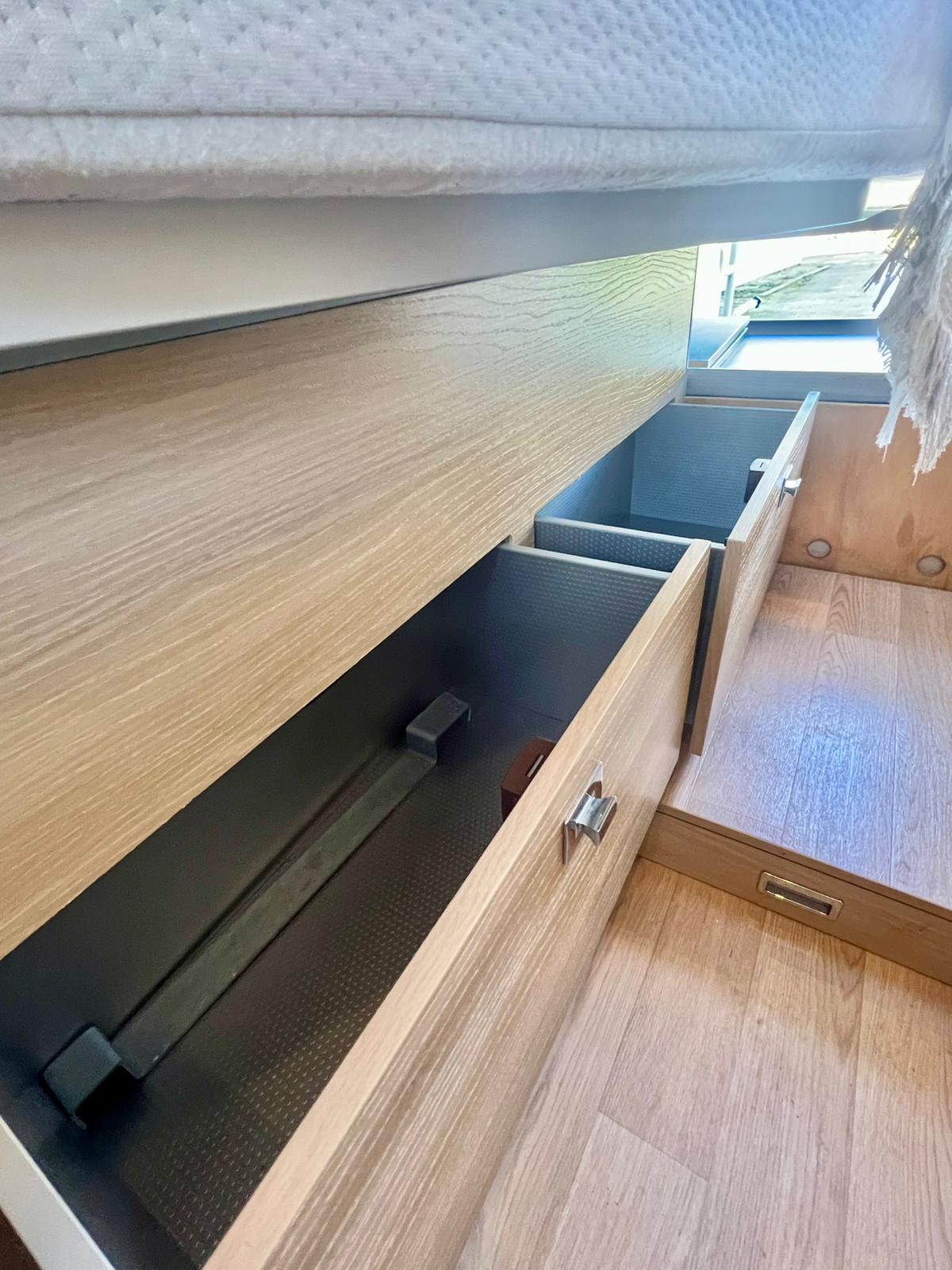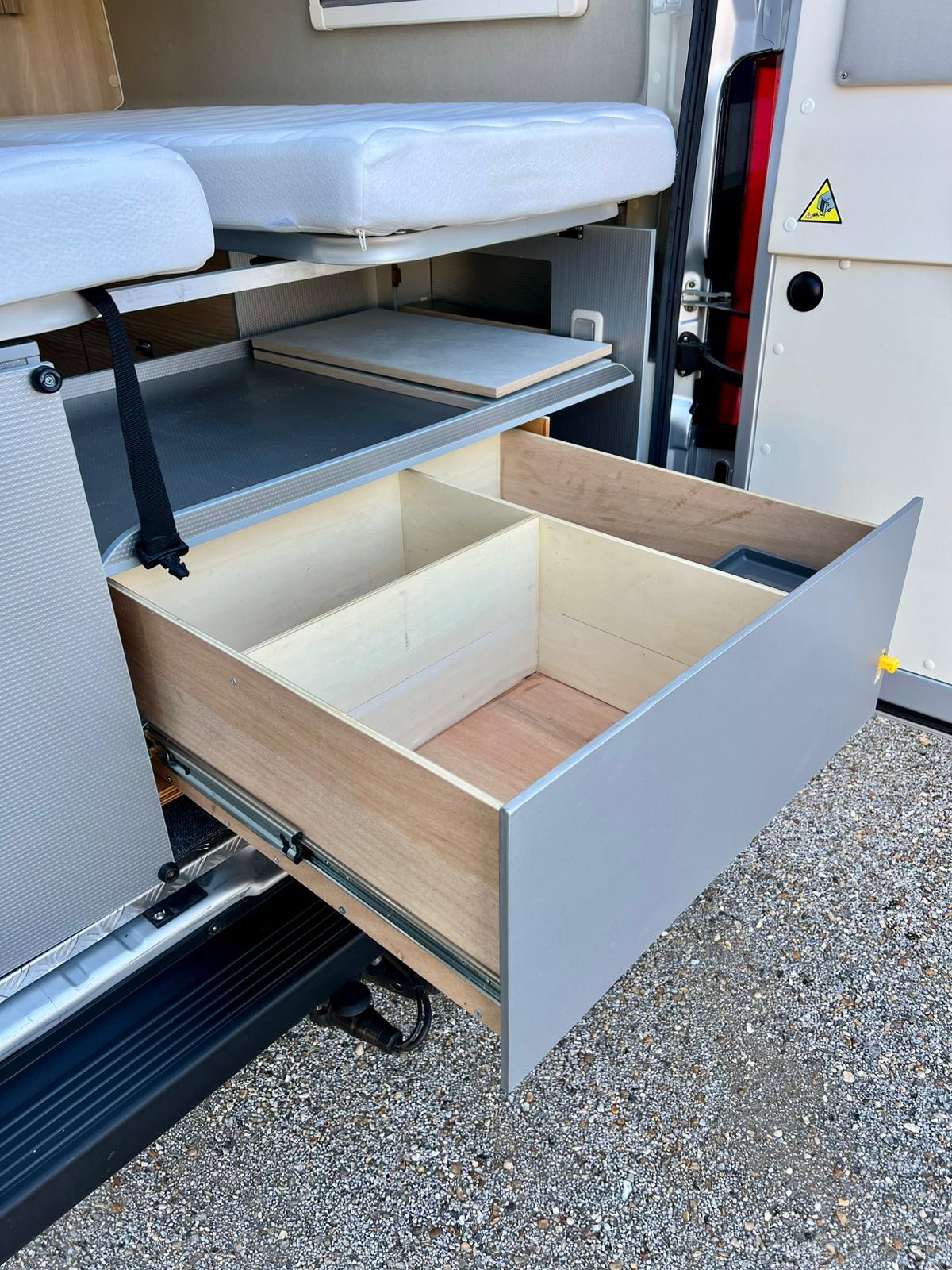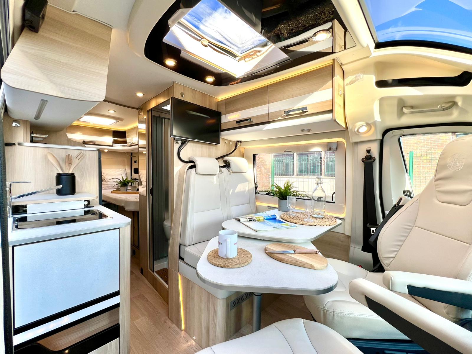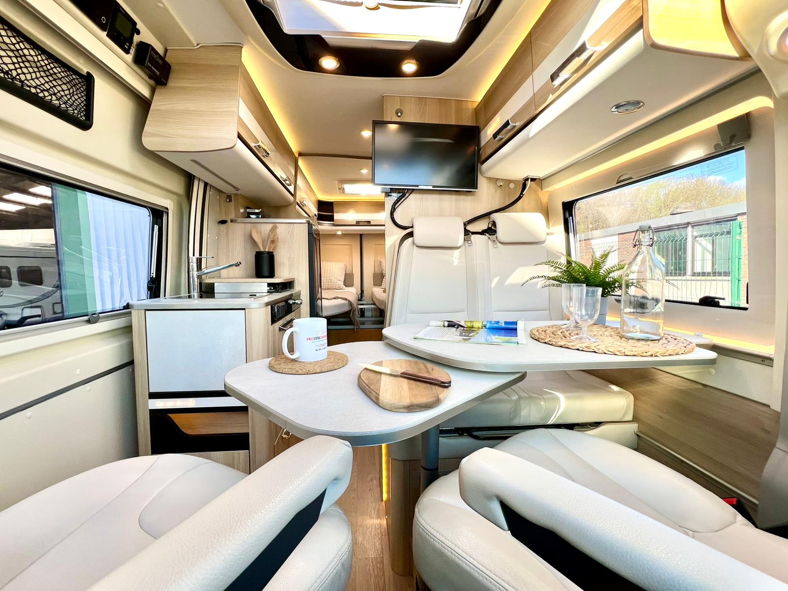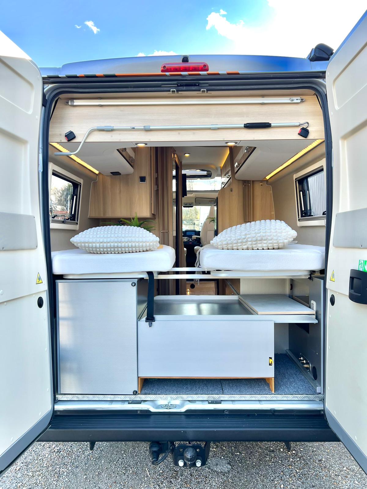 Couchages : Lit jumeaux arrière (195 x 80 cm x2 + rejoignable) & couchage dinette (185 x 97 cm)