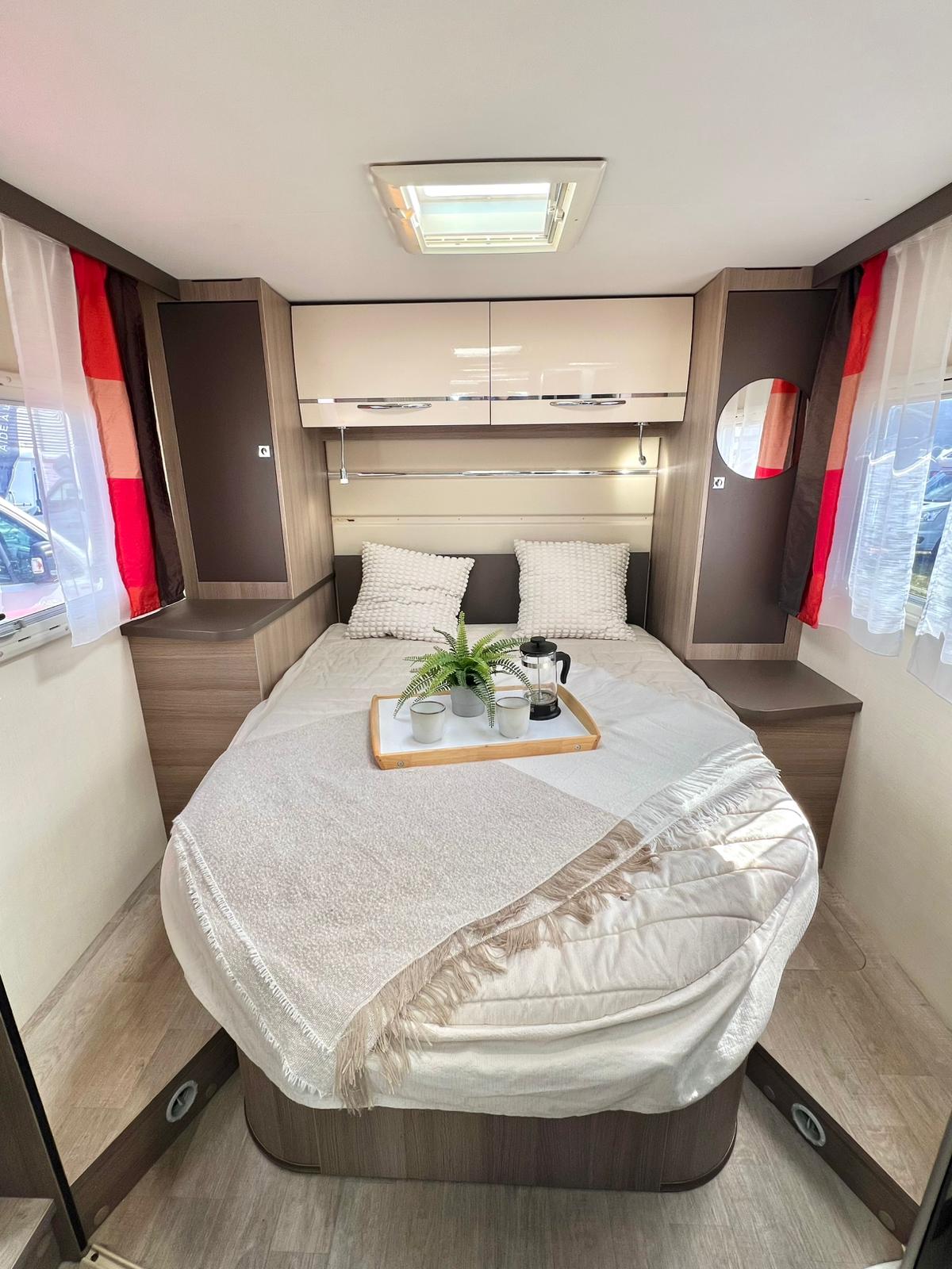 Couchages :Lit central (138 x 191 cm) et lit de pavillon (140 x 187 cm)