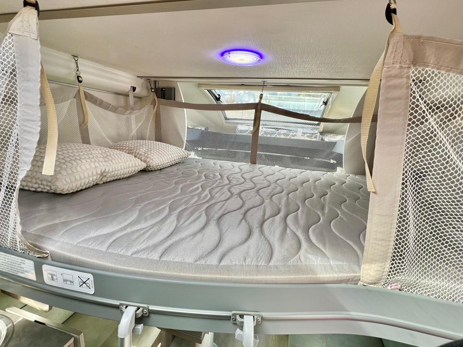 Couchages : Lit central (160 x190 cm) et lit de pavillon (140 x 190 cm)