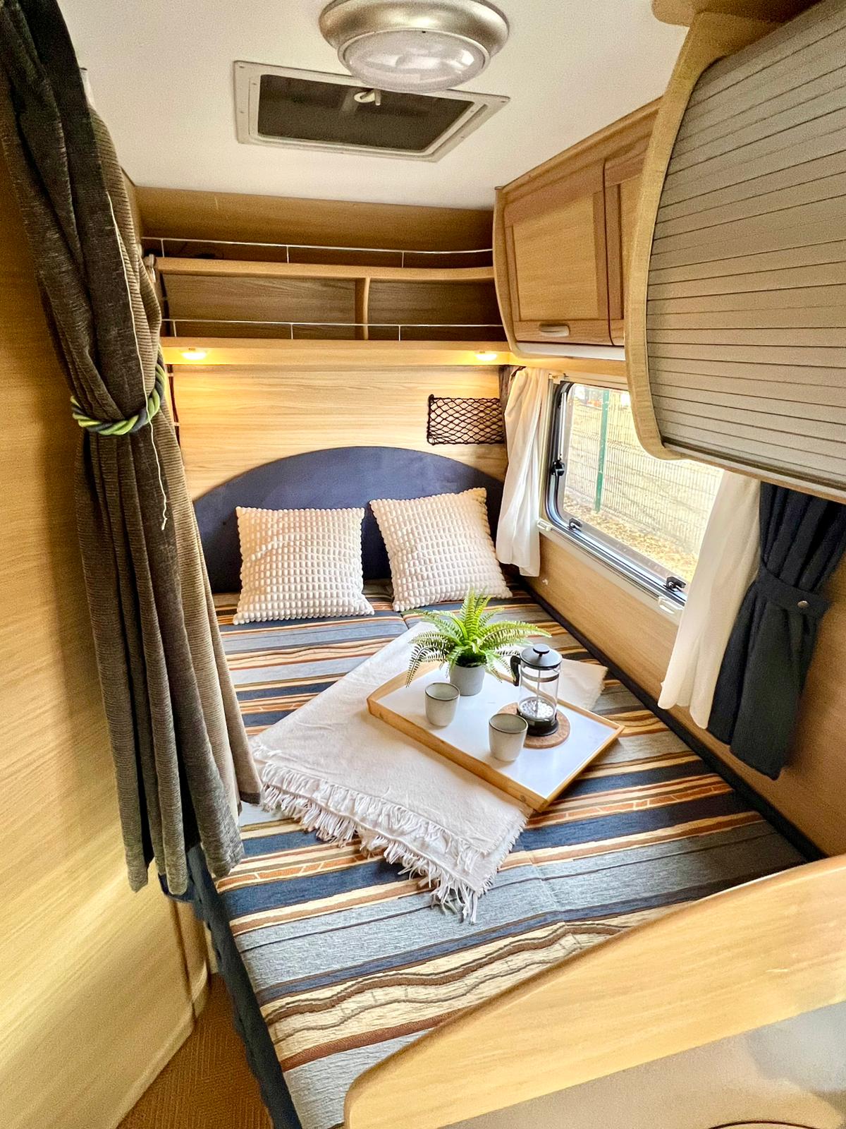 Couchages : Lit permanent arrière à la française (197 x 130 cm) et Lit dinette (200 x 85 cm)