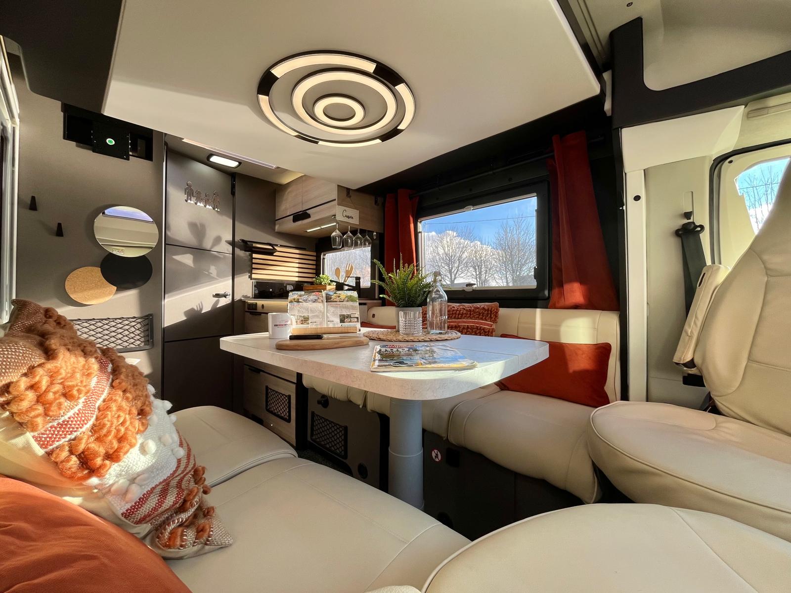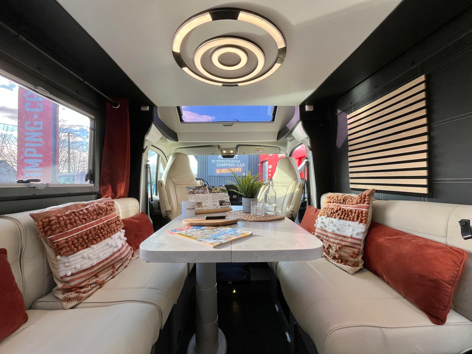 Couchages : Lit pavillon électrique + Lit dinette électrique (2 + 2 couchages)